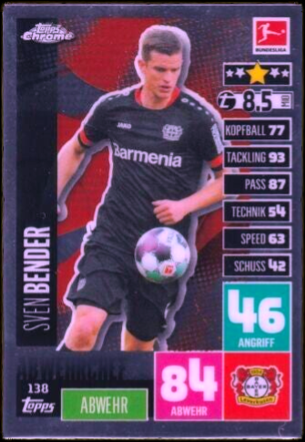 Nr. 138 Sven Bender - Match Attax Bundesliga Chrome 20/21