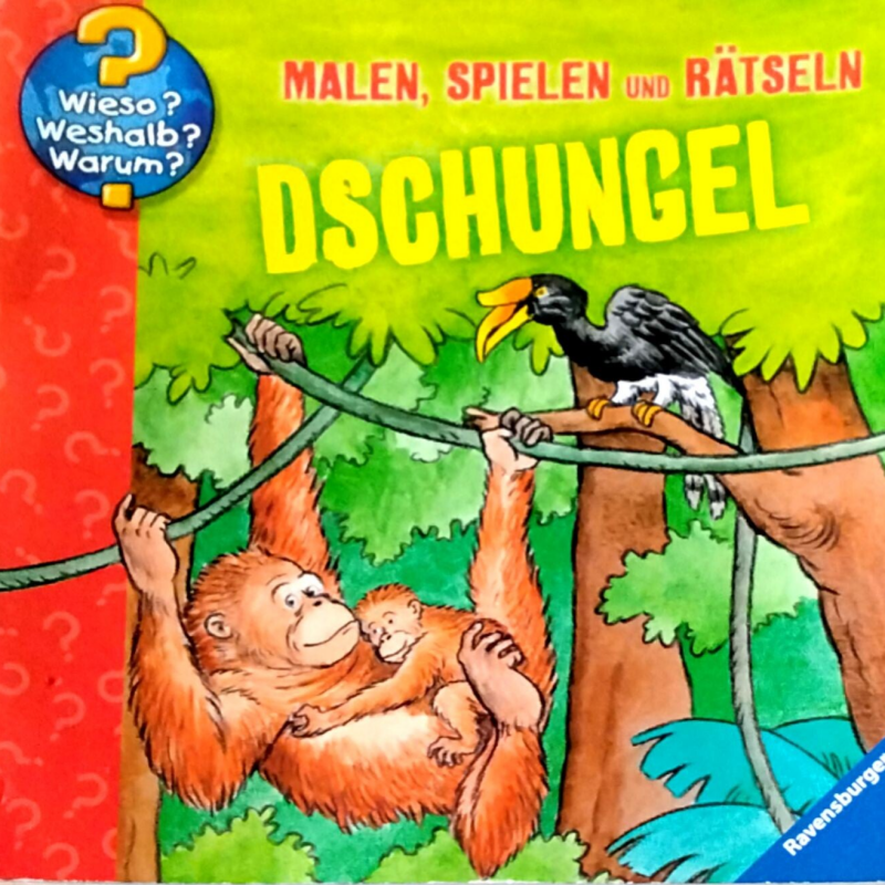 Dieses Buch aus der bekannten Reihe Wieso? Weshalb? Warum? nimmt Kinder mit auf ein kreatives Abenteuer in den Dschungel. Es enthält Ausmalbilder, spannende Spiele und knifflige Rätsel, die den Kleinen spielerisch die Welt der Dschungeltiere näherbringen.