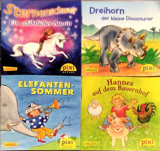 Von magischen Einhörnern über prähistorische Dinosaurier bis hin zu fröhlichen Bauernhoftieren! Dieses tierisch gute 4er-Set von Pixi ist eine bunte Safari durch die faszinierende Welt der Tiere. Die vier abwechslungsreichen Geschichten aus dem Carlsen Verlag sind perfekt für alle kleinen Tierfreunde mit einer großen Portion Fantasie.