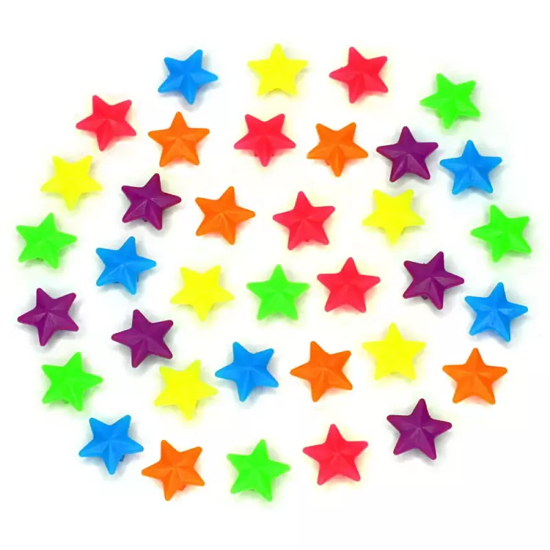 Jede Packung enthält 36 sternförmige Clips in leuchtenden Farben: Grün, Blau, Gelb, Pink, Lila und Orange (jeweils 6 Stück pro Farbe).
