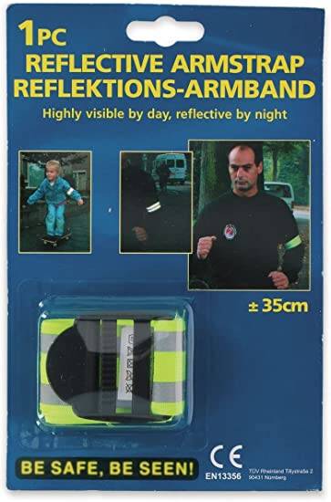 Die zwei silberfarbenen Reflektorstreifen werfen das Licht von Autoscheinwerfern stark zurück. Dank des elastischen und flexiblen Materials passt das Band sich optimal an und lässt sich mit einer Schnalle einfach am Oberarm befestigen.