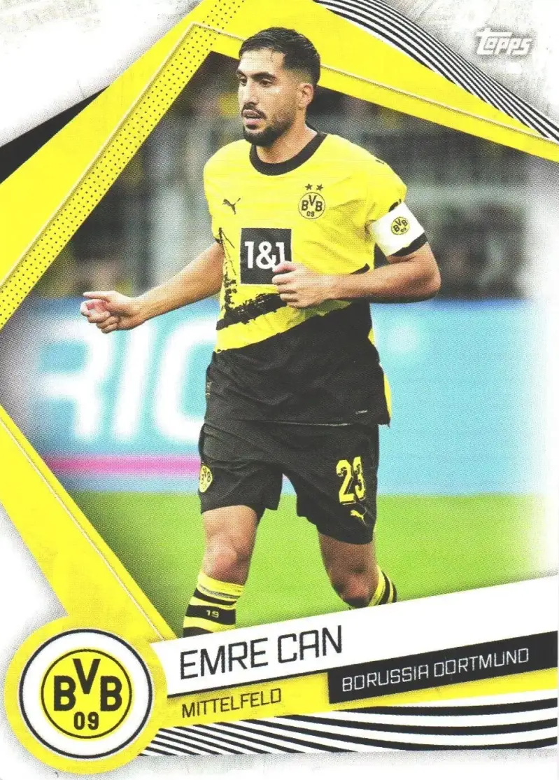 Produktbeschreibung: Ein zentrales Sammlerstück für Fans des Dortmunder Kapitäns! Diese Karte stammt aus dem offiziellen 2023-24 Topps BVB Fan Set und trägt die Nummer #14. Sie zeigt Emre Can, den physisch starken Anführer und Mittelfeldmotor der Borussia, in seiner typisch entschlossenen Pose.